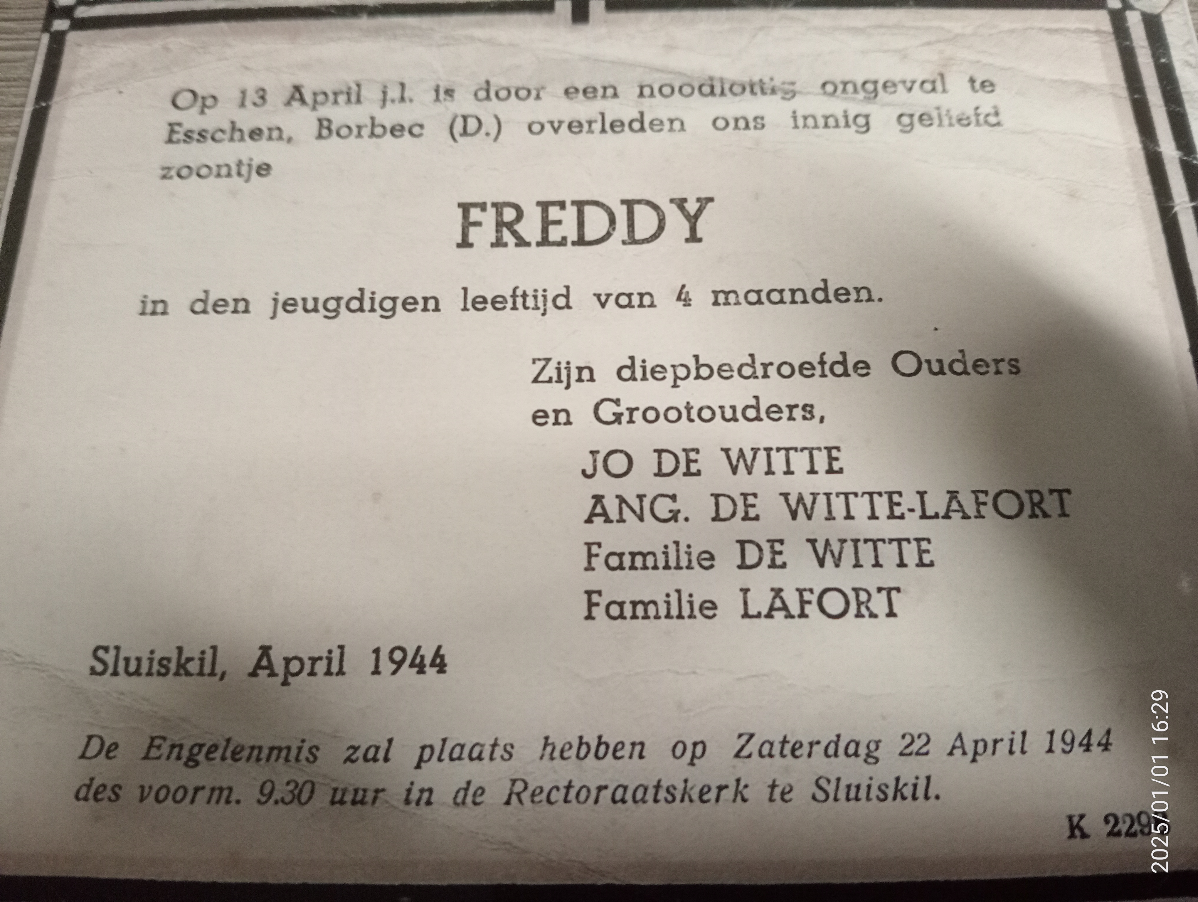 Bidprentje Freddy de Witte